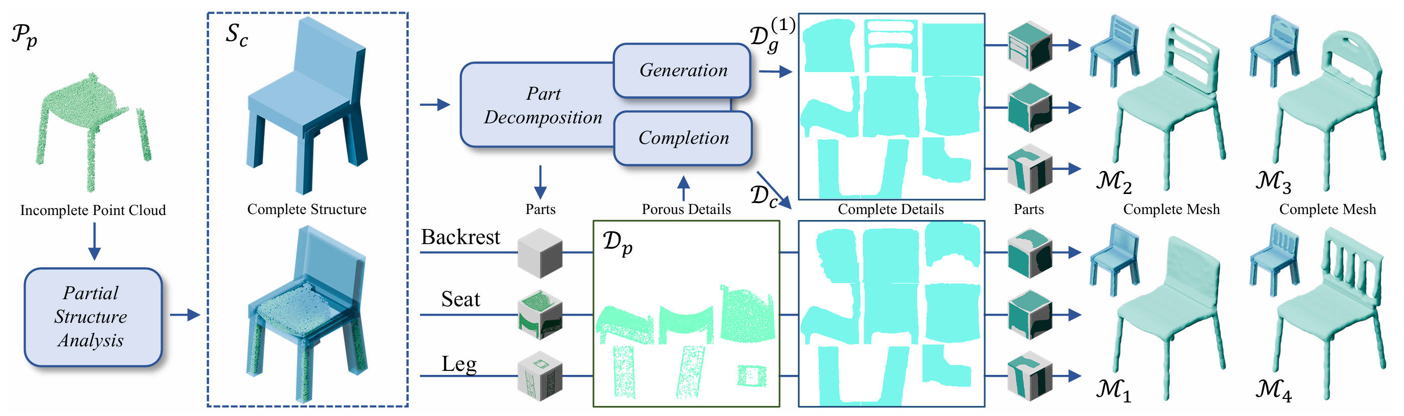 ABSTRACT: Generating 3D shapes at part level is pivotal for downstream applications such as mesh retopology, UV mapping, and 3D printing. However, existing part-based generation methods often lack sufficient controllability and suffer from poor semantically meaningful decomposition. To this end, we introduce X-Part, a controllable generative model designed to decompose a holistic 3D object into semantically meaningful and structurally coherent parts with high geometric fidelity. X-Part exploits the bounding box as prompts for the part generation and injects point-wise semantic features for meaningful decomposition. Furthermore, we design an editable pipeline for interactive part generation. Extensive experimental results show that X-Part achieves state-of-the-art performance in part-level shape generation. This work establishes a new paradigm for creating production-ready, editable, and structurally sound 3D assets. Codes will be released for public research.
